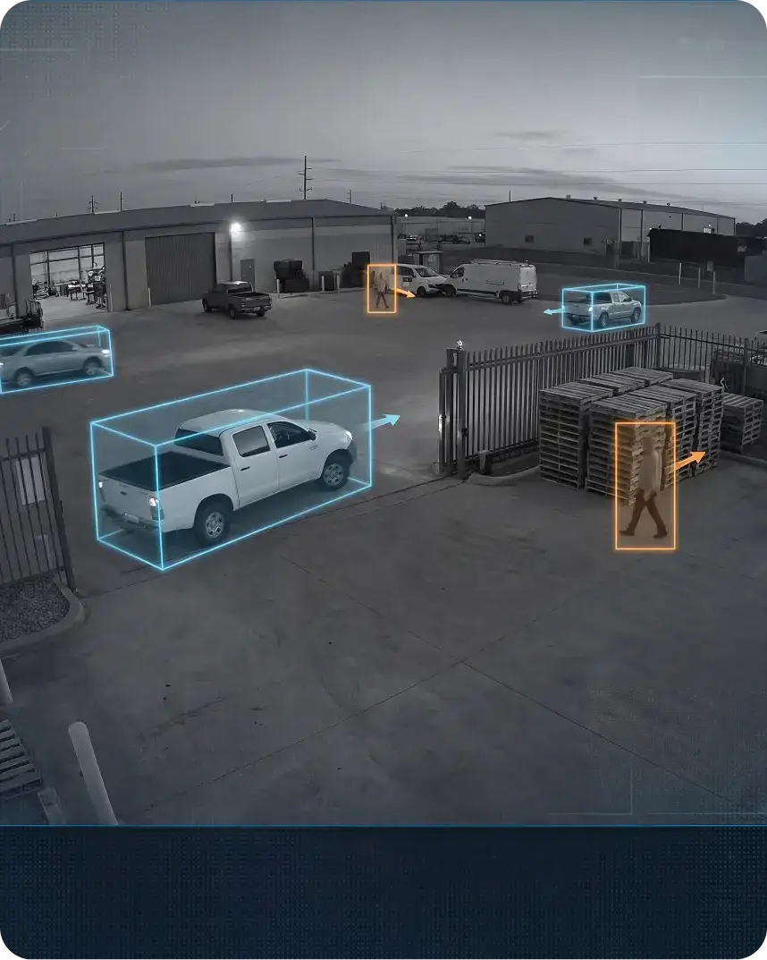 AI accurately identifies people and vehicles to reduce false alarms and focus only on real threats.