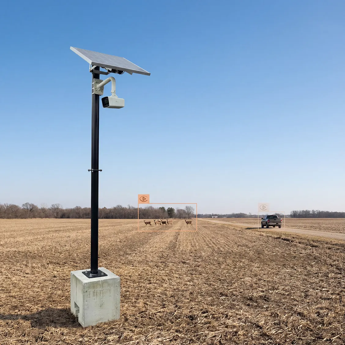 Protect your land, livestock, and equipment with solar-powered, AI-driven surveillance from Vision Detection Systems — built for the most remote agricultural and rural environments.